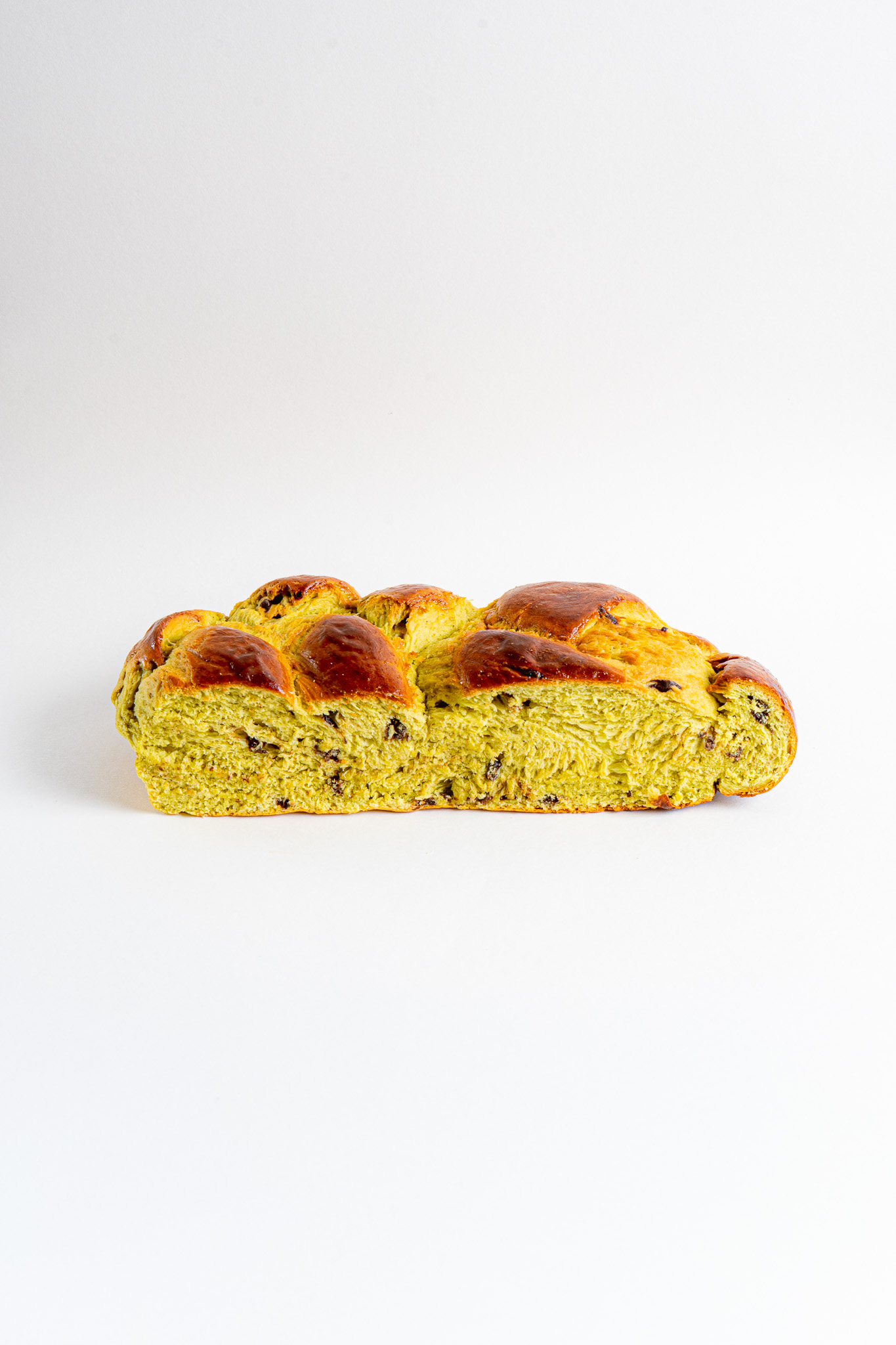 Pain au beurre pistache et pépites de chocolat, moelleux et parfumé. Une alliance gourmande qui apporte douceur et réconfort à chaque bouchée.