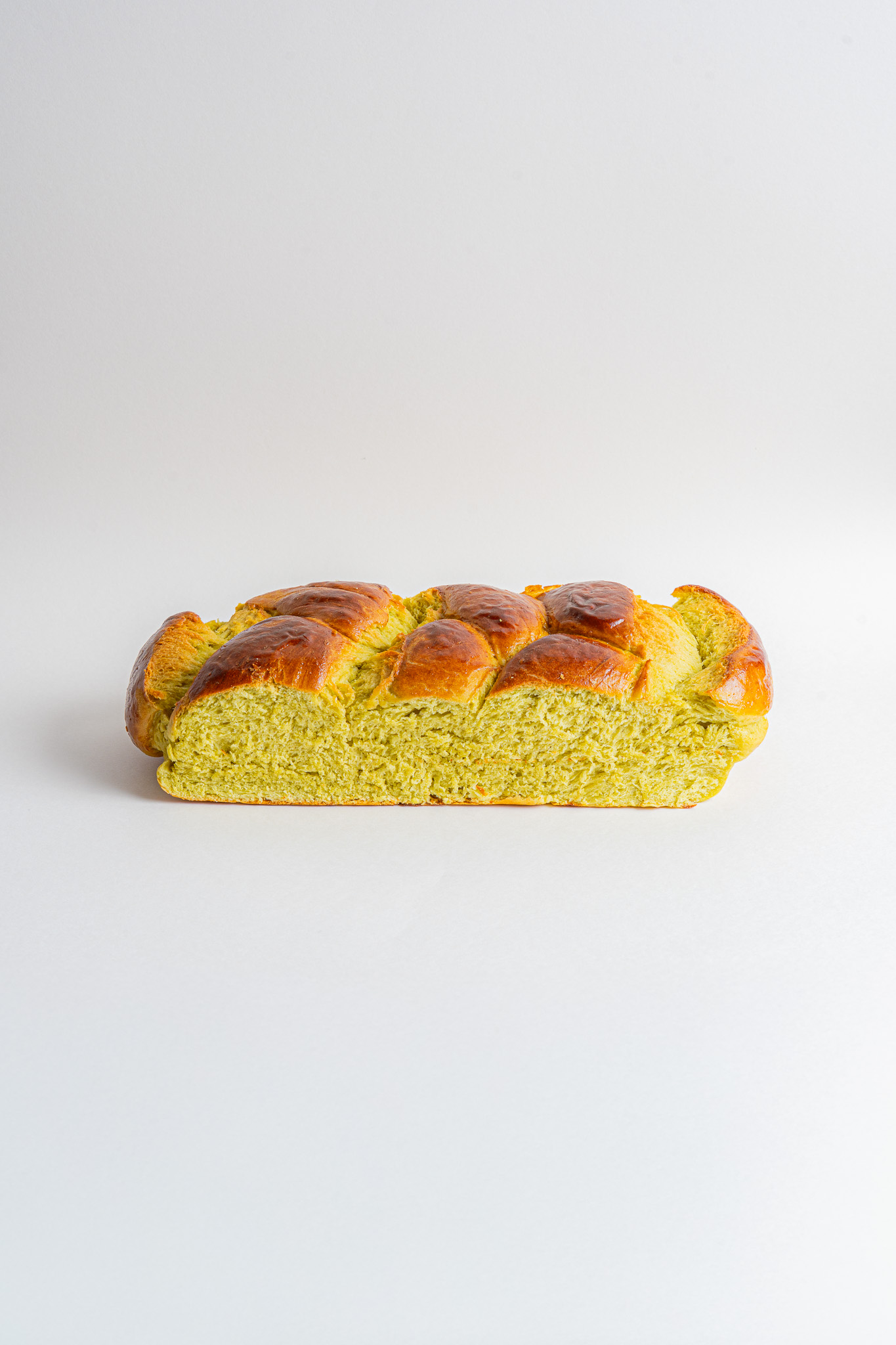 Natte de 550 gr : 5 parts Une revisite originale du pain au beurre traditionnel, sublimée par la douceur et l’intensité de la pistache. Sa texture moelleuse et son goût délicatement parfumé en font une véritable gourmandise.